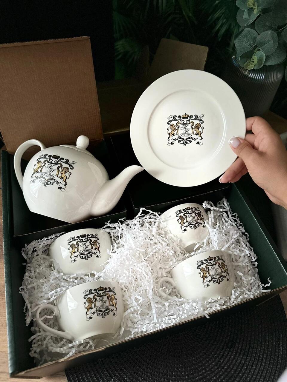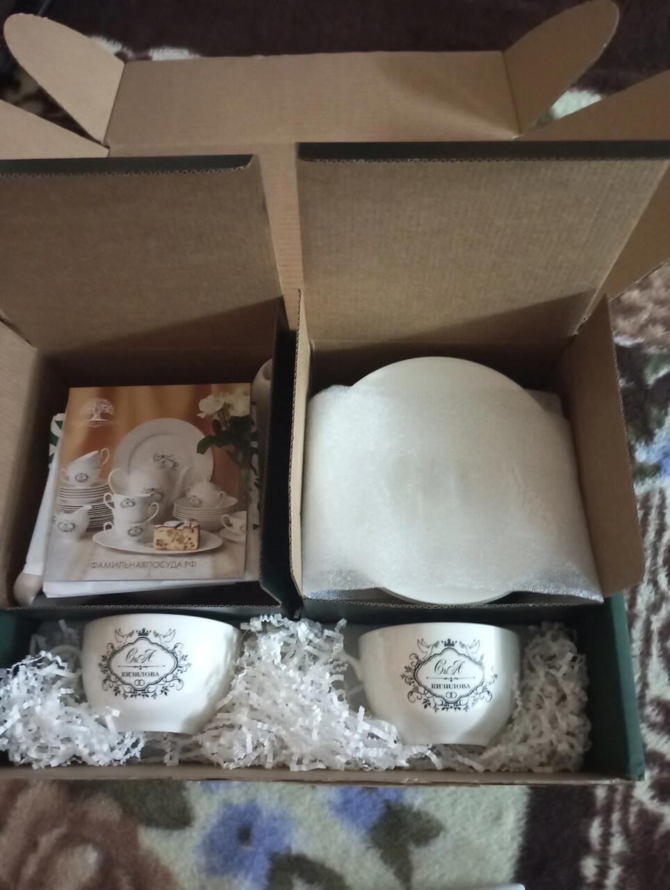 Коробка от сервиза с низу была чуть продавлена и порвана. Написала персональному менеджеру, нам сразу же отправили новую коробочку… Большое спасибо за внимание и заботу Анастасии!