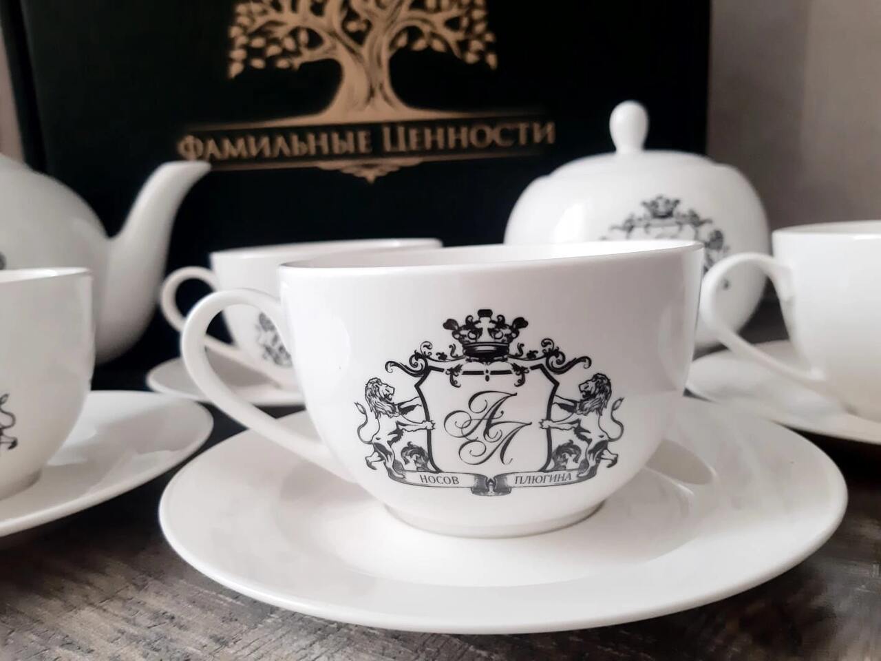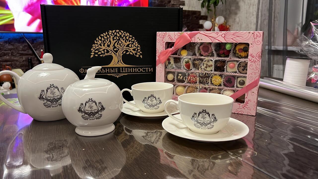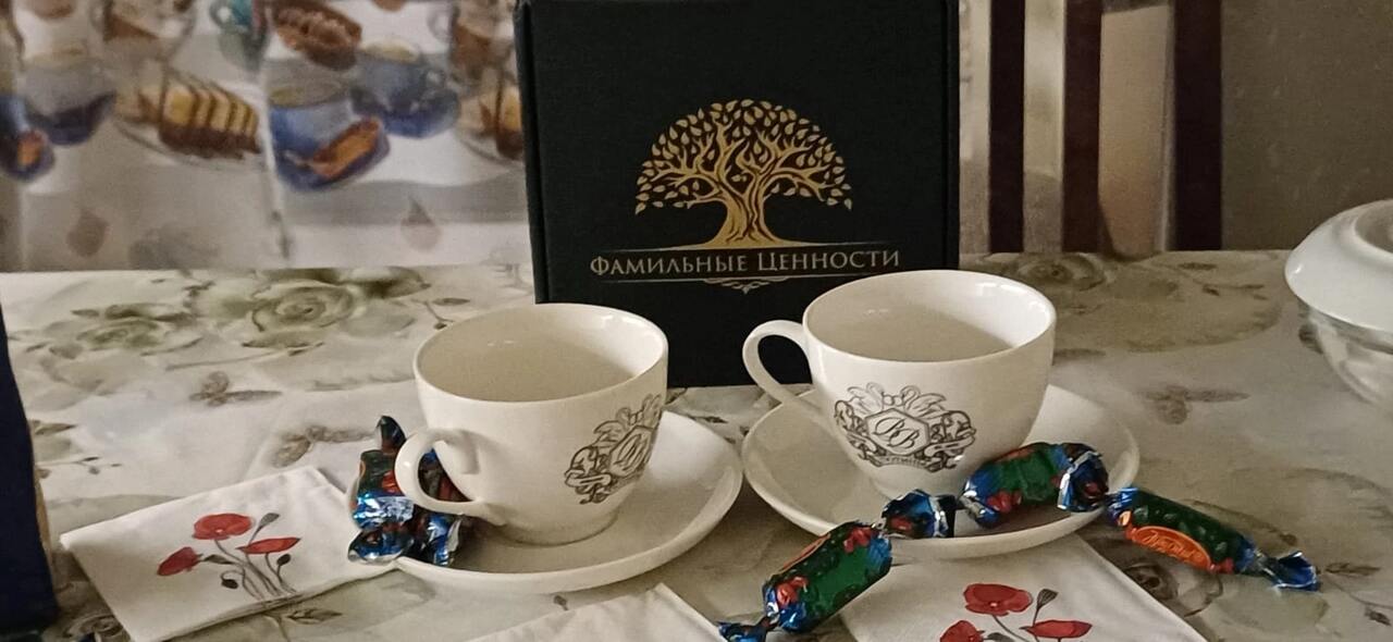 Огромное спасибо коллективу производственной компании «Фамильные ценности» за подарки, которые сближают, привносят тепло в дом, в семью. Я заказывала сразу несколько комплектов для моих родных и все обладатели фамильной посуды остались очень довольны и тронуты оригинальностью идеи. Приятно было общаться с менеджером Анастасией. Столько внимания она уделила, помогала в выборе вариантов изделий, гербов. На все вопросы я получала исчерпывающие ответы. Анастасия! Спасибо от меня лично и от моих близких! Желаю коллективу компании всех благ! Продолжим с вами сотрудничество, ведь не всех еще близких порадовала и год семьи в России только начинается! Желаю всем семьям мира, добра и любви! И приятного чаепития! «Папа и мама, дети и внуки, стихи, признания, песни и шутки… На стене — театр теней. Ещё чайку налей…»