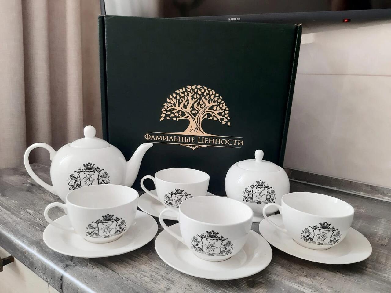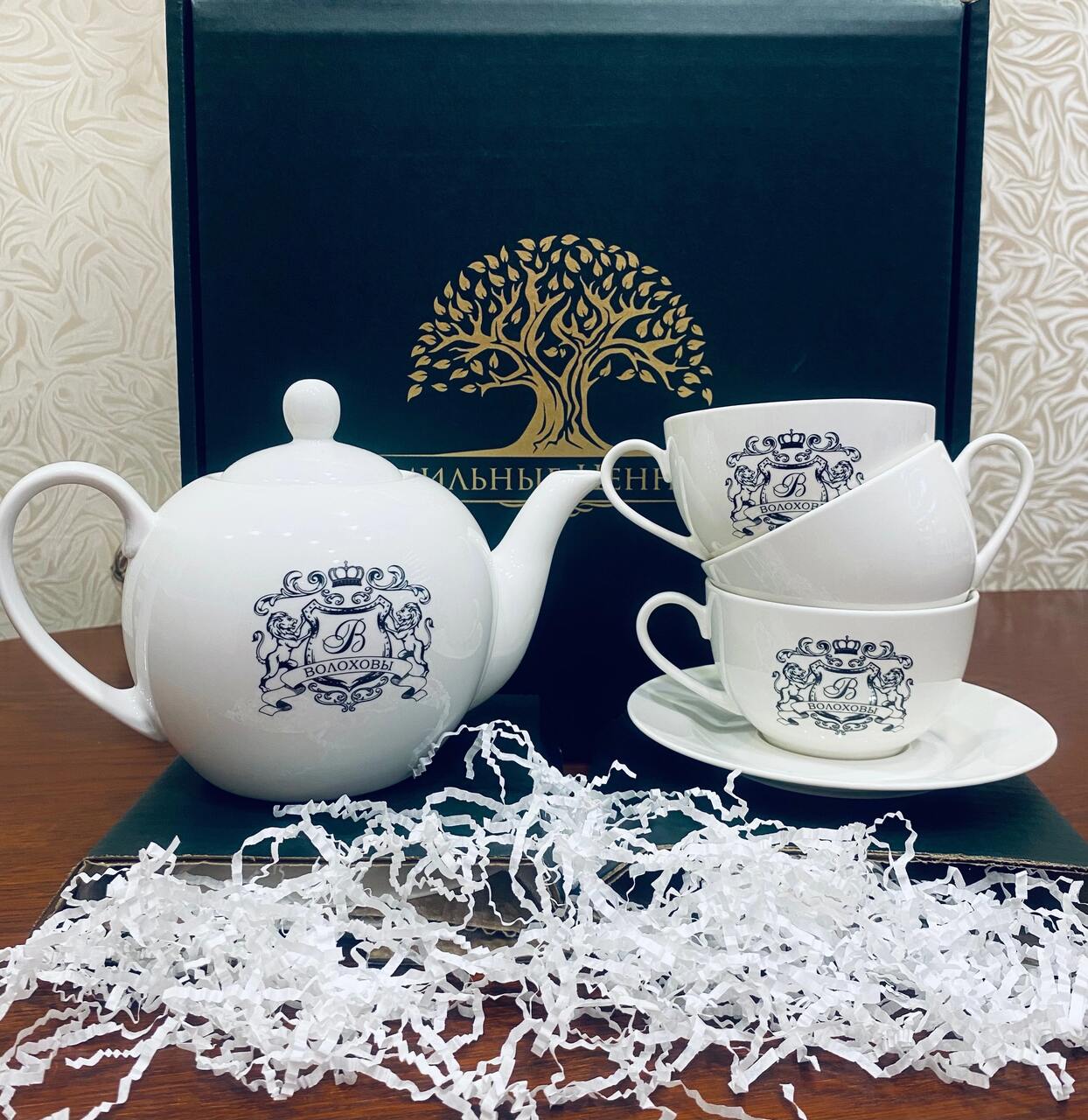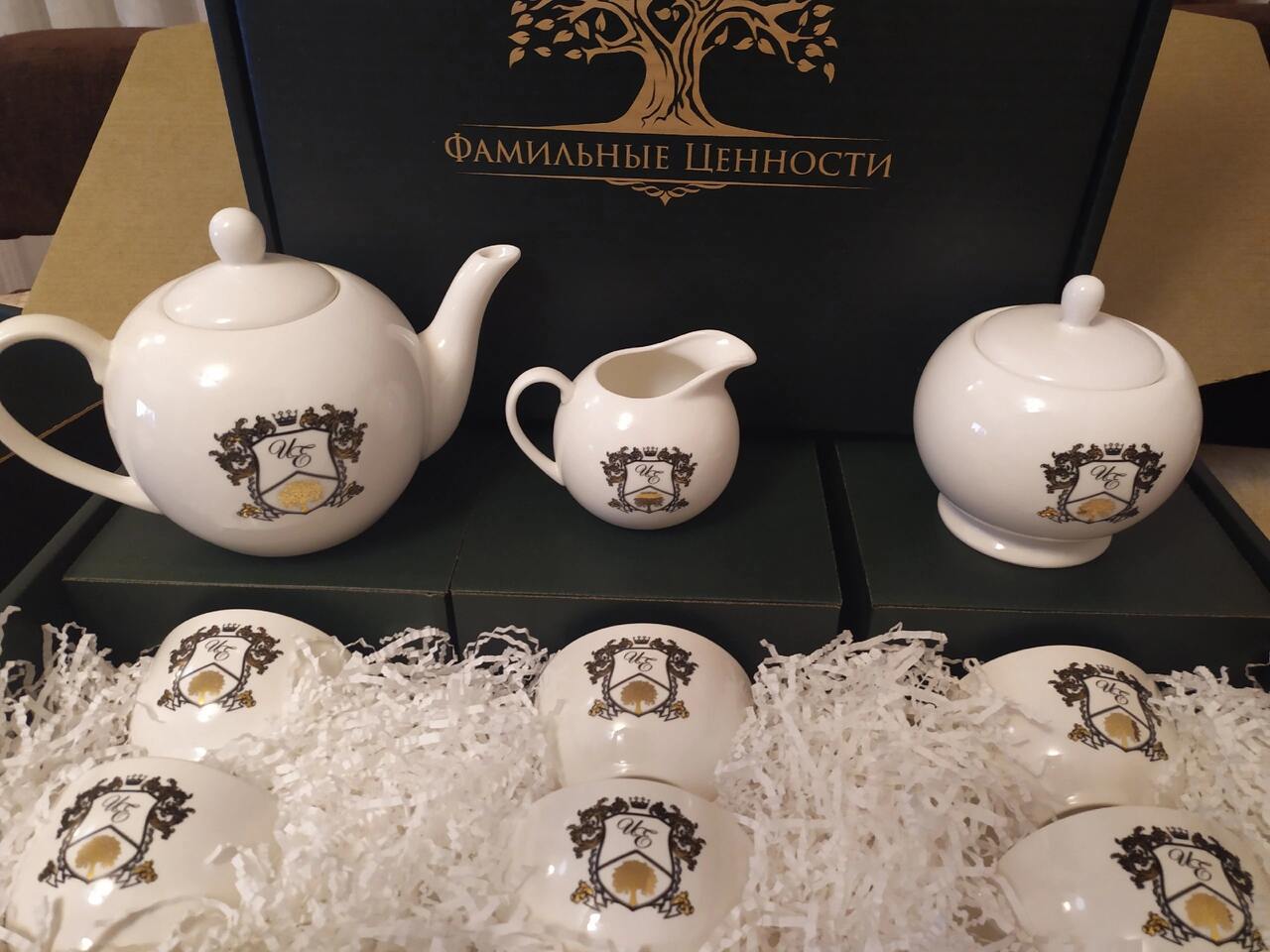 Огромное спасибо коллективу производственной компании «Фамильные ценности» за подарки, которые сближают, привносят тепло в дом, в семью. Я заказывала сразу несколько комплектов для моих родных и все обладатели фамильной посуды остались очень довольны и тронуты оригинальностью идеи. Приятно было общаться с менеджером Анастасией. Столько внимания она уделила, помогала в выборе вариантов изделий, гербов. На все вопросы я получала исчерпывающие ответы. Анастасия! Спасибо от меня лично и от моих близких! Желаю коллективу компании всех благ! Продолжим с вами сотрудничество, ведь не всех еще близких порадовала и год семьи в России только начинается! Желаю всем семьям мира, добра и любви! И приятного чаепития! «Папа и мама, дети и внуки, стихи, признания, песни и шутки… На стене — театр теней. Ещё чайку налей…»