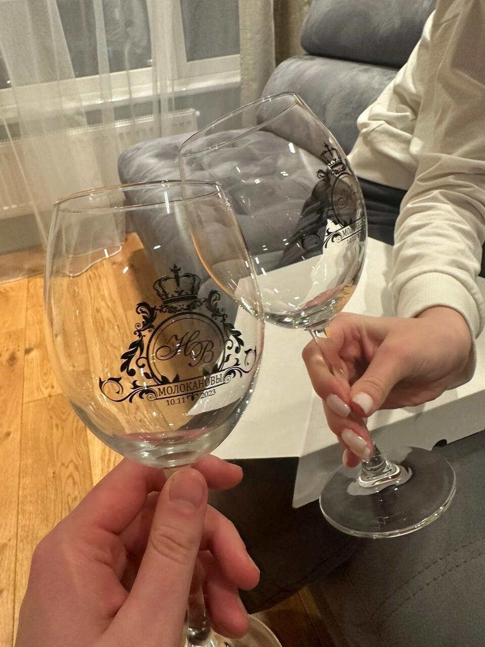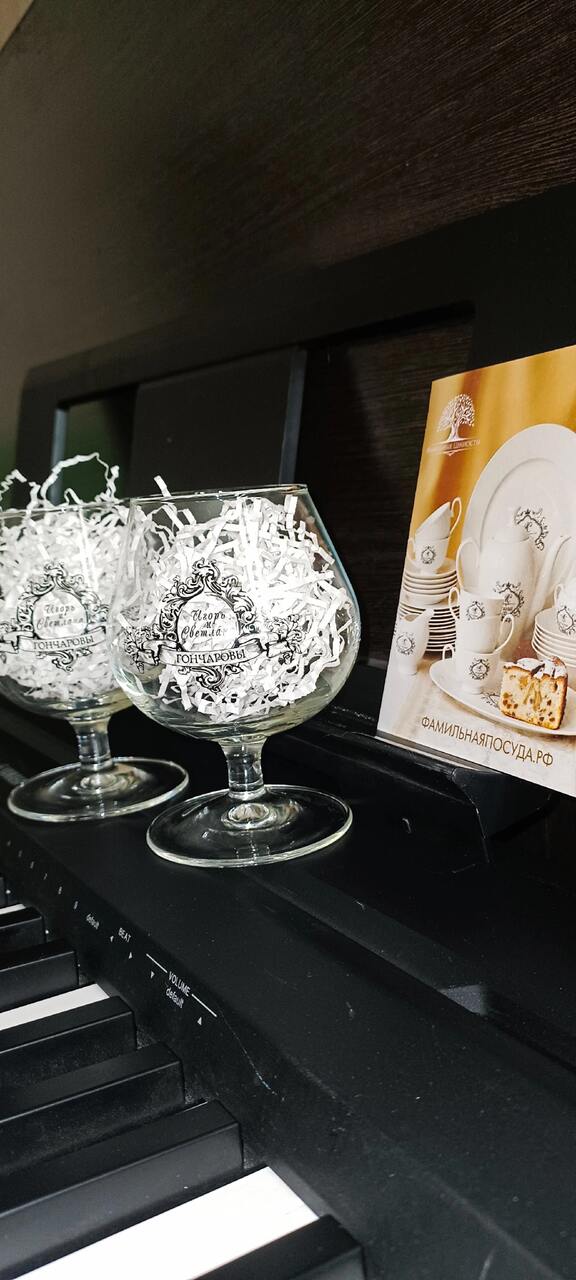 Здравствуйте! Наконец-то пишу отзыв! Спасибо большое за качественный и красивый подарок! Всё сделано по нашему желанию, посуда качественная, красивая! Заказали прилично заранее, но думаю получателю подарка понравится так же как и нам!