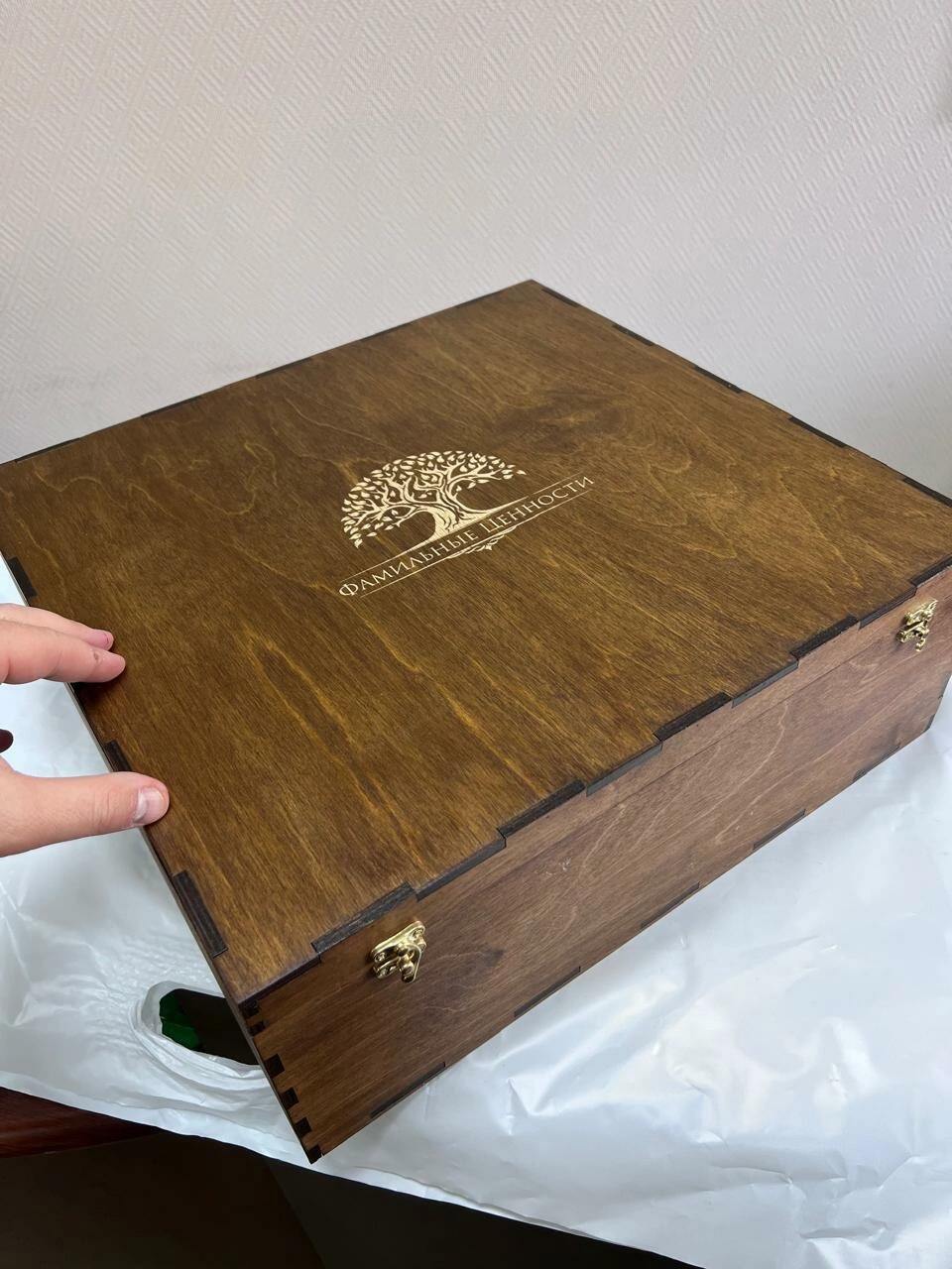 Хотелось подарить на золотую свадьбу родителям мужа хороший, памятный подарок. И это было ,,ВАУ,, когда мы открыли первую коробку и не пожалели. Счастью не было предела. Всё красивое на 100%, с нашим фамильным гербом, упаковка порадовала. Всё на высшем уровне.