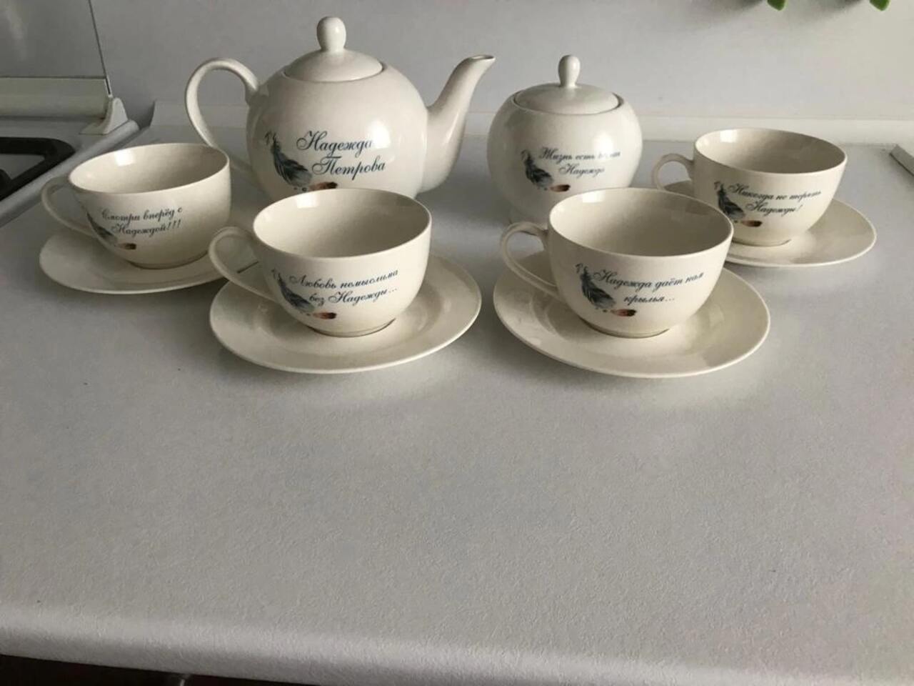 Добрый день! Хочу выразить благодарность и восторг за вашу работу! Идеальная работа от моменты заказа, до получения подарка! Заказали сервиз руководителю на день рождения! Подарок пришелся по душе! Качество на высшем уровне во всех деталях, учтены все пожелания! Достойный подарок, видно профессиональную работу! Спасибо!