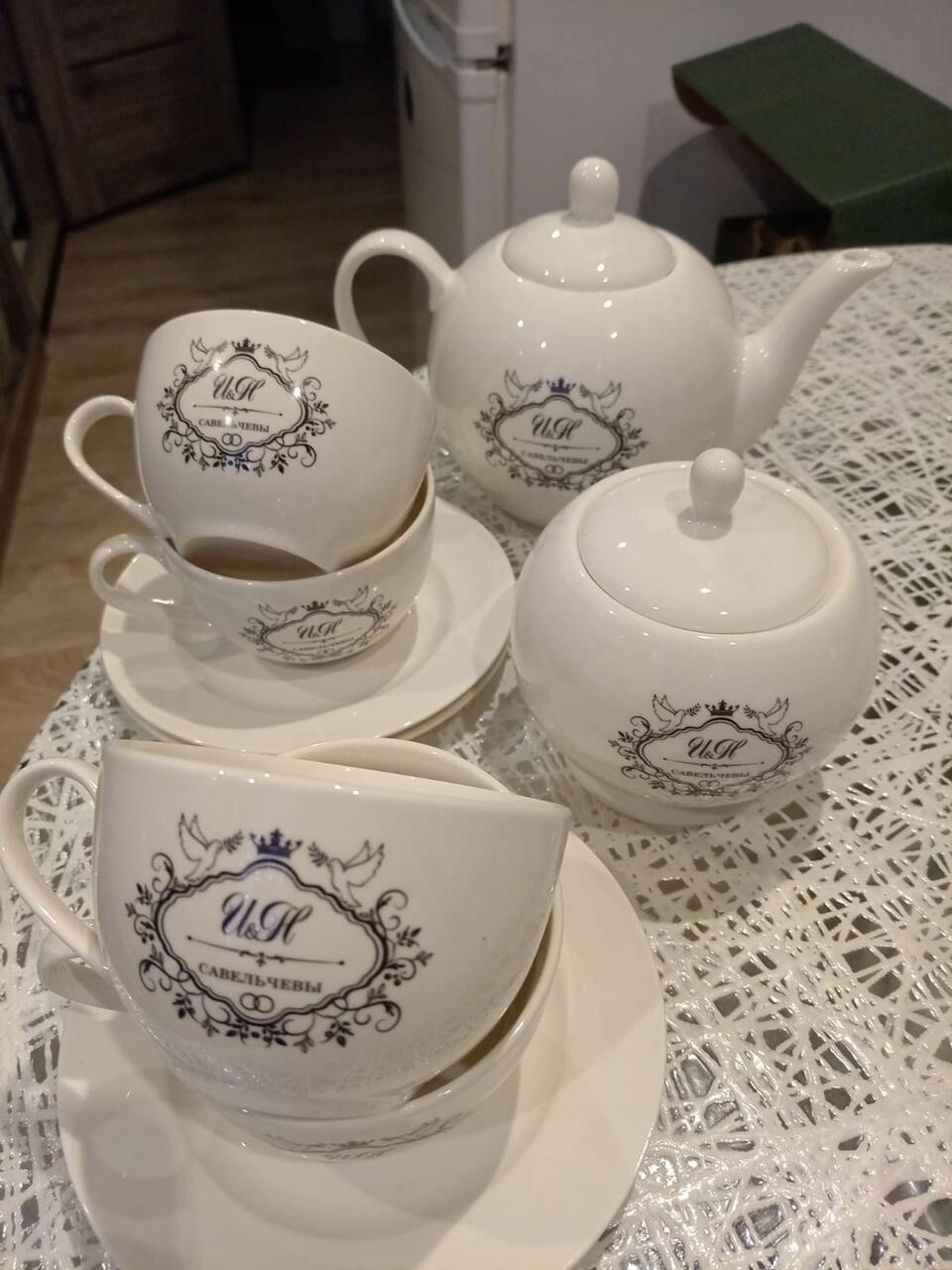 Здравствуйте, дорогие! Вот такую чайную пару я подарила своему сыну и невестке на их первую годовщину свадьбы. Сказать, что они были в восторге, это вообще ничего не сказать. Шок, удивление, восторг это только малая часть того, что они испытали в тот момент! А эмоции наших родных стоят дорогого! Спасибо вам огромное за такие замечательные и удивительные подарки!